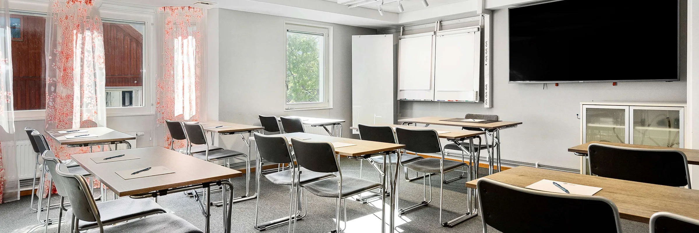 * Blädderblock och en liten whiteboard kan ställas in vid förfrågan.
